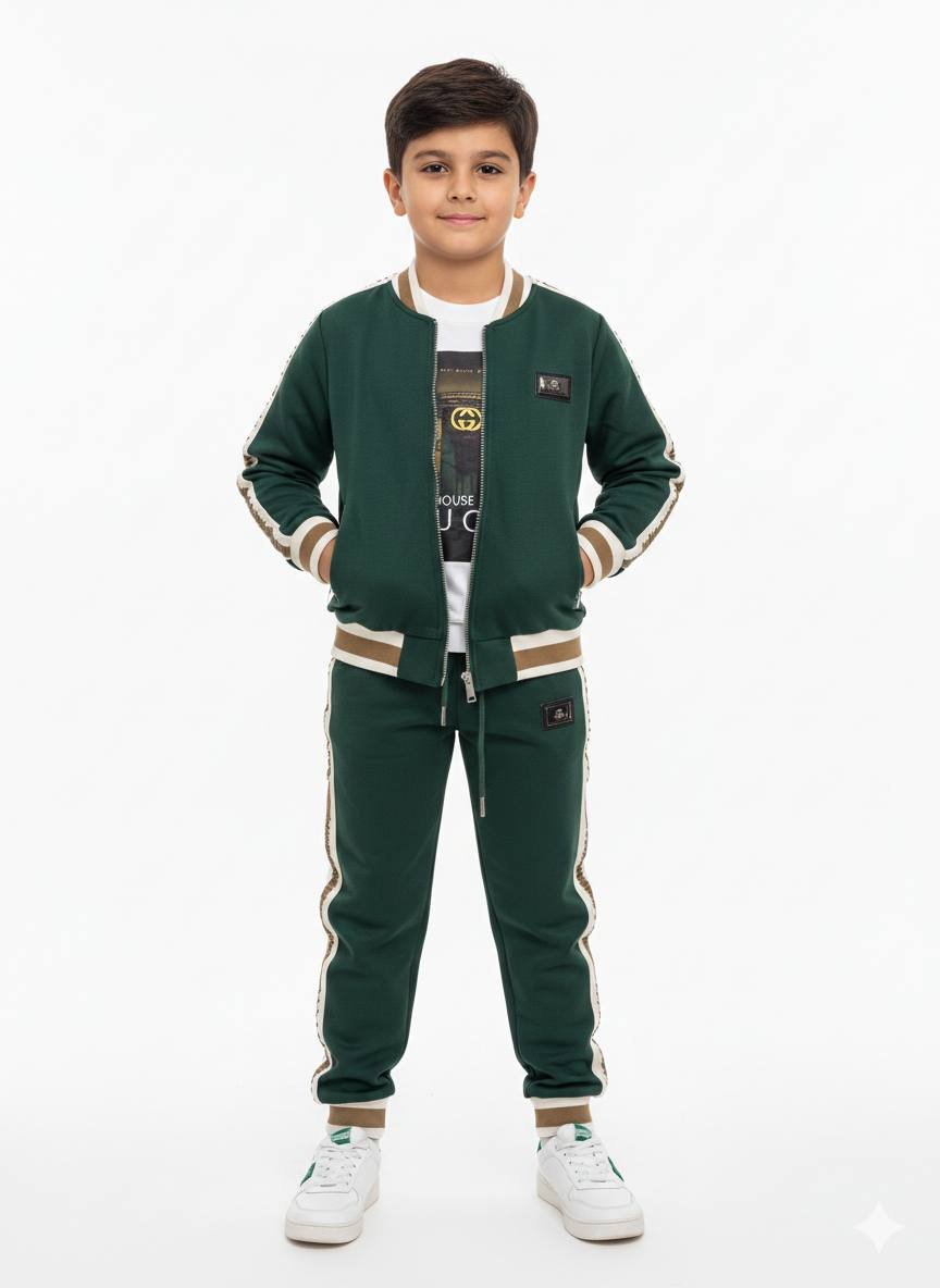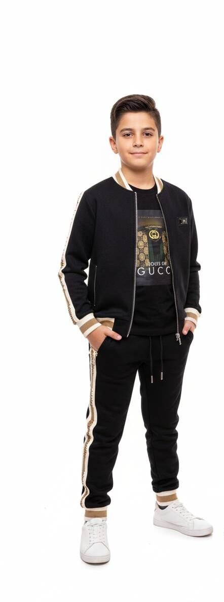 Offrez à votre enfant un look tendance et confortable avec cet ensemble survêtement GUCCI au design moderne. Composé d’une veste zippée et d’un pantalon assorti, il allie parfaitement élégance urbaine et confort quotidien.
